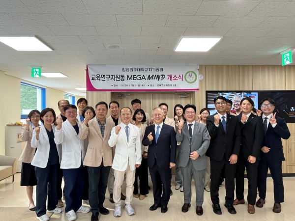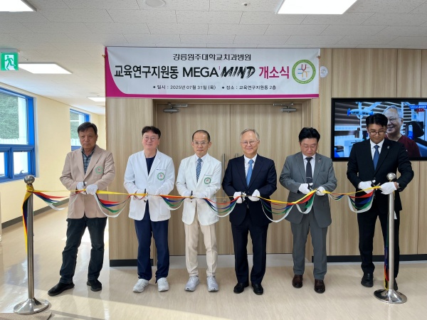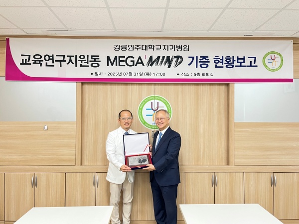 강릉원주대학교치과병원(병원장 박찬진)은 지난 731, 교육연구지원동 내 메가마인드(MEGA’MIND)’ 개소식을 개최했다. 이번 공간은 메가젠임플란트(대표이사 박광범)의 후원으로 조성되었으며, 교육연구지원동 내 첨단 강의시설과 원내생의 학습 편의를 위한 대기공간 등으로 구성되었다.