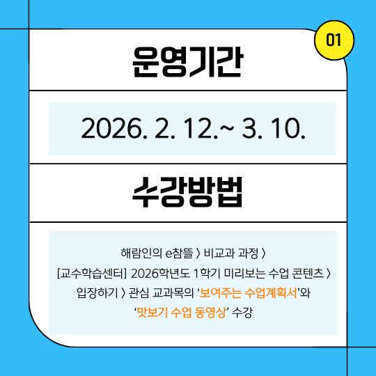 [교수학습센터] 2026학년도 1학기 미리보는 수업 콘텐츠 운영 안내