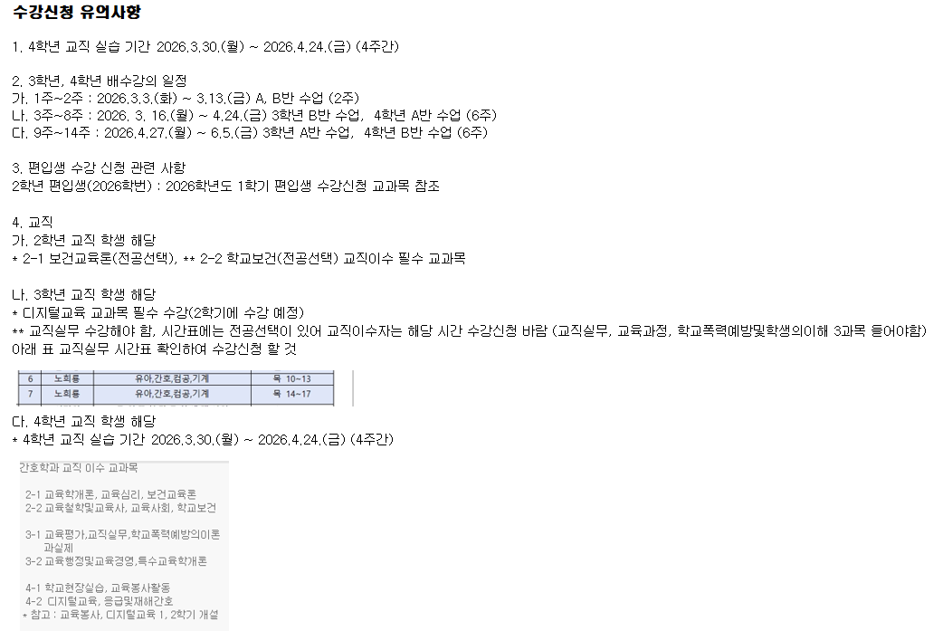 2026학년도 1학기 전공 시간표 안내 드립니다.