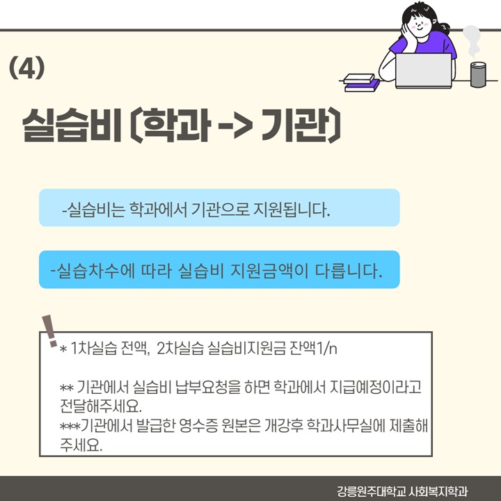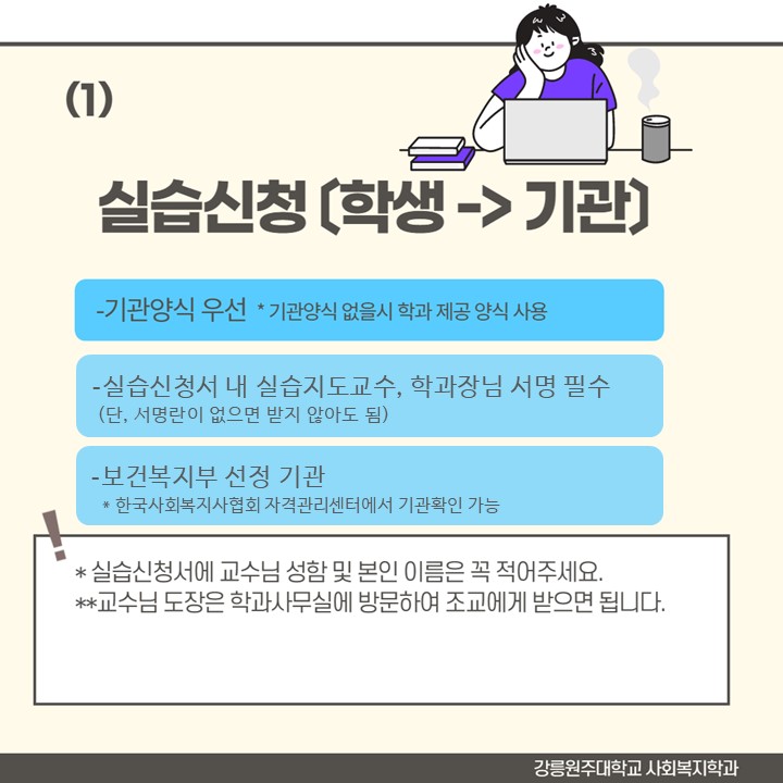 (기관에서 필요한 신청 서류들도 잘 알아보고 제출하시고 과사에서 보낼 서류 있으면 꼭 얘기해주세요!